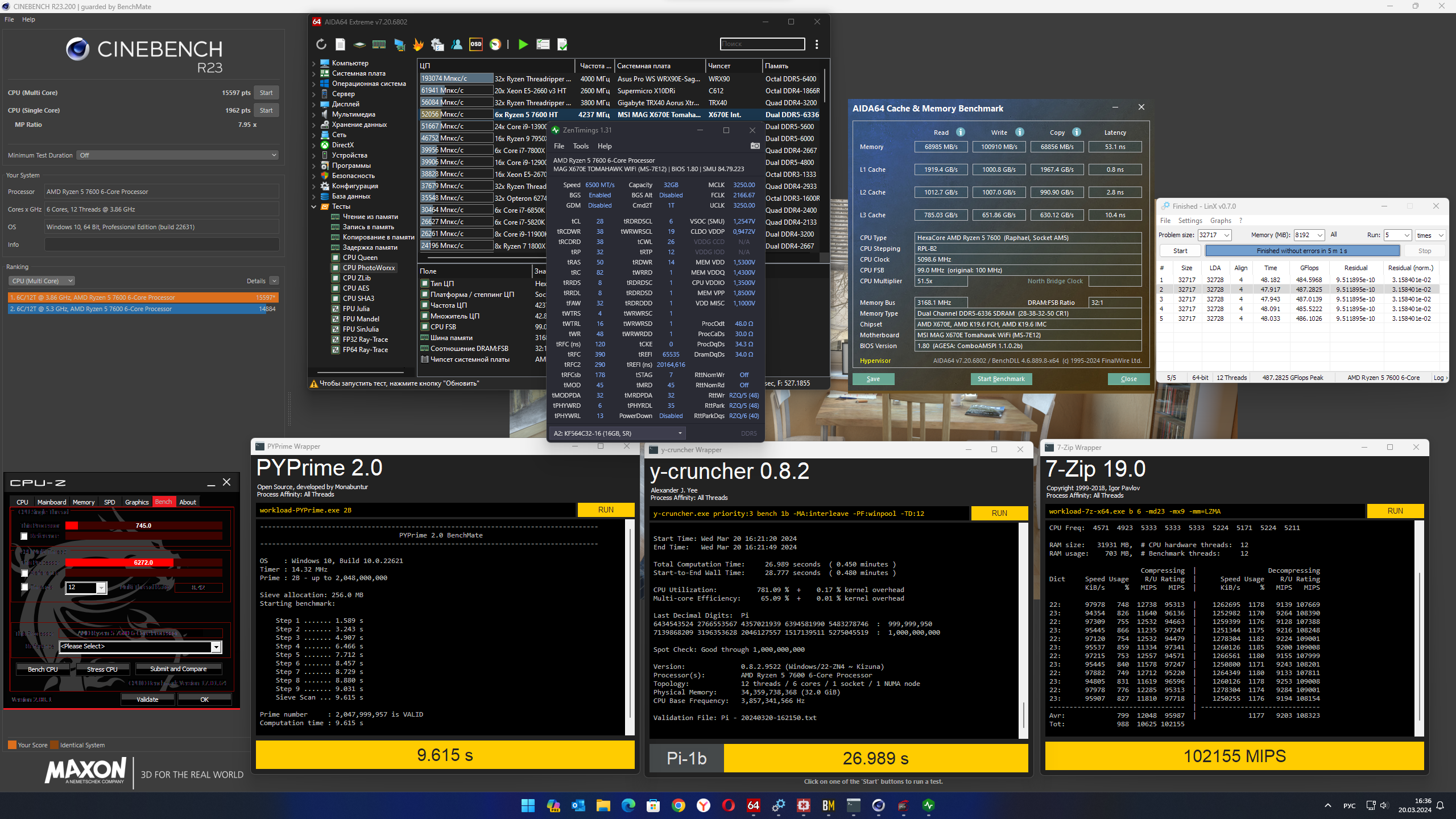 К стати, освободился у меня тут SSD, решил на него накатить винду для тестирования стабильности и бенчей всяких. А т.к. все знают, что вин11 якобы режет производительность, накатил вин10 (мне то по боку на чём стабильность тестить), только облегчил её насколько смог - вырубил кучу служб, никакого левого софта. Прогнал бенчи, которые недавно прогонял на win11 (без такой лютой оптимизации), вот что получилось