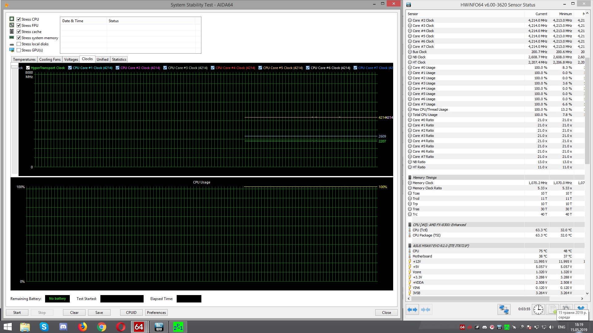 AIDA64 отлично тестит FXы. У меня Prime95, OCCT Linpack и S&М по часу молотили систему с проблемным разгоном ОЗУ и все прекрасно. Но вот в игрулях видеодрайвер отваливался. И с напругами все было отлично. А AIDA64 за 5-10 минут крашила тест, до тех пор пока не порешал проблемы с памятью.