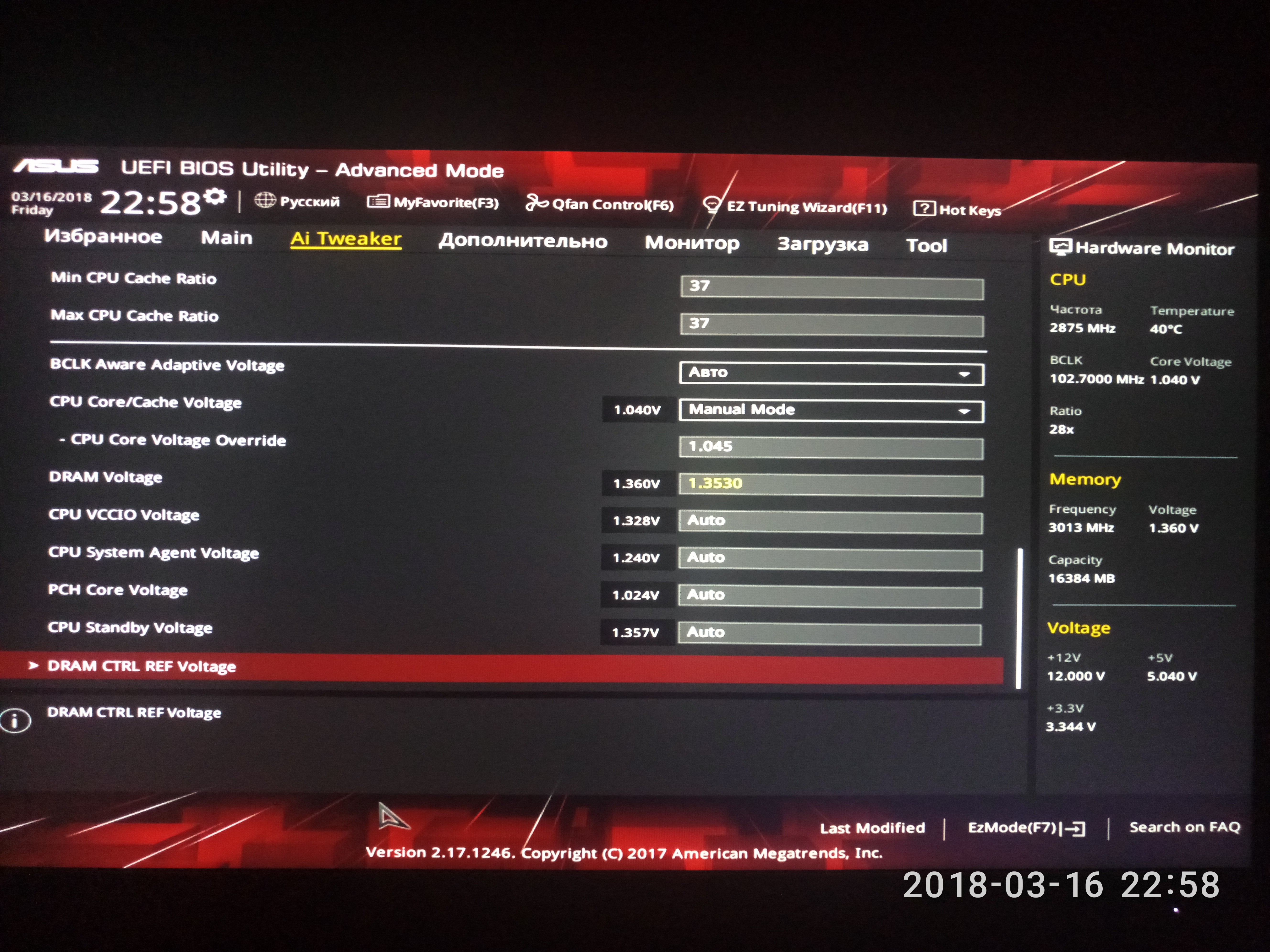 чет и я начал беспокоится, у меня i5 8400 с материнкой Asus Strix z370 itx, уменьшил только Vcore с 1.2 до 1.045, а остальное не трогал, походу остальные параметры тоже завышены, если можно напишите пожалуйста примерное напряжение для CPU VCCIO Voltage CPU System agent Voltage PCH Core Voltage CPU Standby Voltage