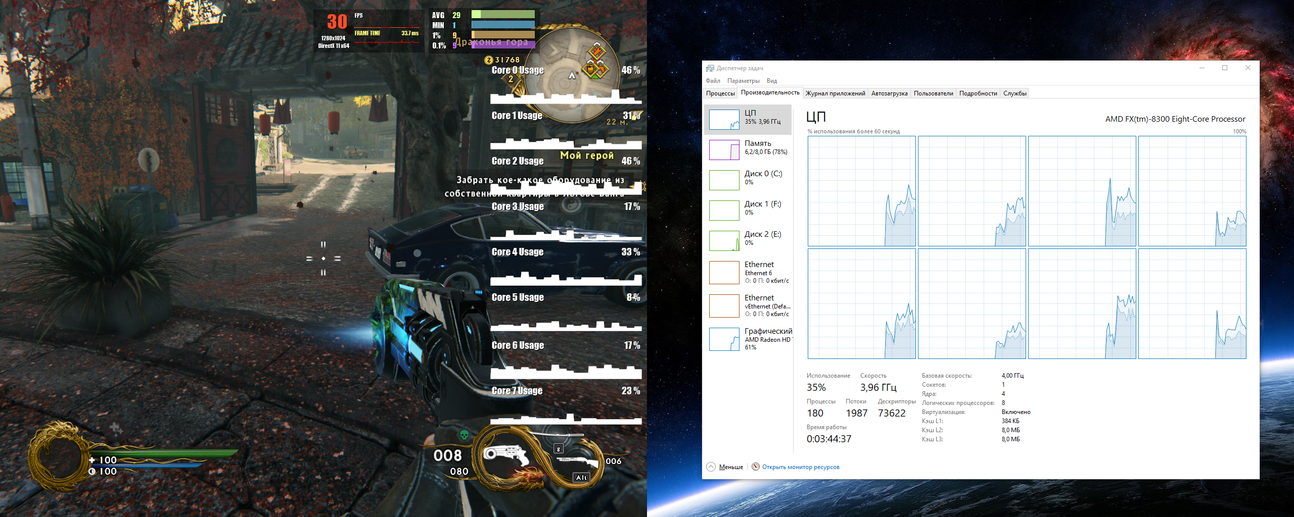 То есть лучше когда процессор непонятно чем загружен под завязку ? У меня зафиксировано на 30 FPS чтобы лишней нагрузки не было, но при этом как и положено больше загружена видеокарта. Я думаю 8300 в разгоне должно в принципе для любой игры хватать, при условии наличия соответствующей видеокарты.