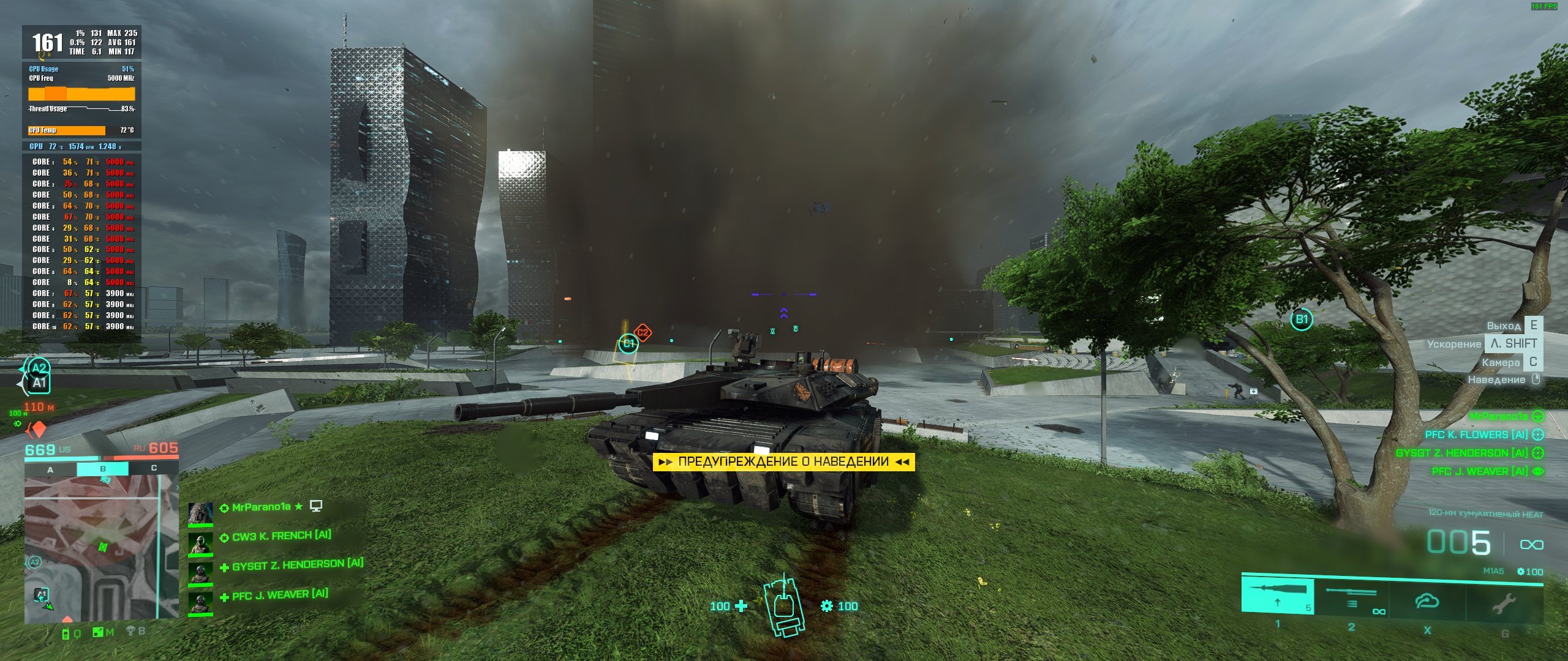 В несложной, в плане нагрузки, игре (на скрине Pathfinder: Wrath of the Righteous) - грузятся большие, фоновая нагрузка так же продолжает висеть на мелких, причем НТ не затрагивает: