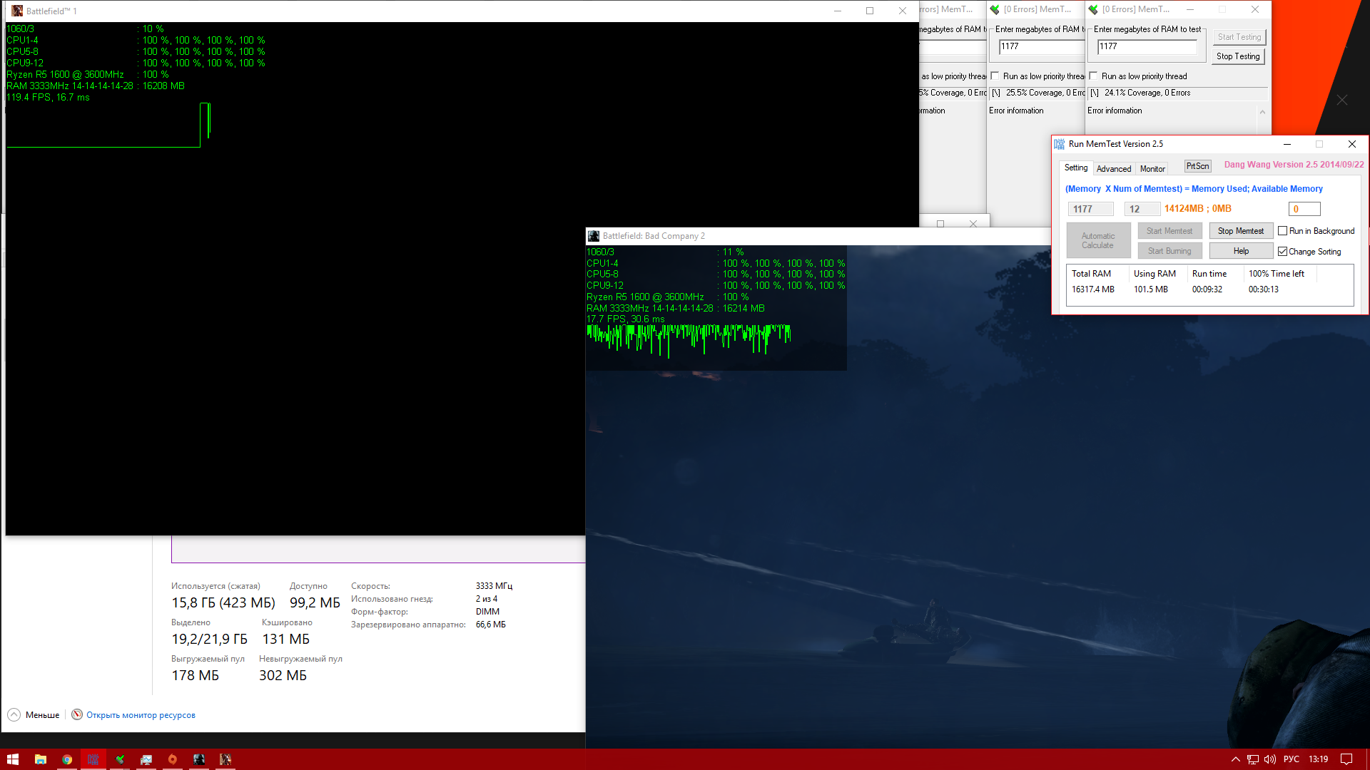 1) они под HCI 1500% меньше греются в среднем на 5 градусов 2) ошибок на HCI 1500% в слотах А2 В2 по 30 в каждом окне, сейчас в А1 В1 только после 5той минуты берн теста вылезло по 1 и то не везде
