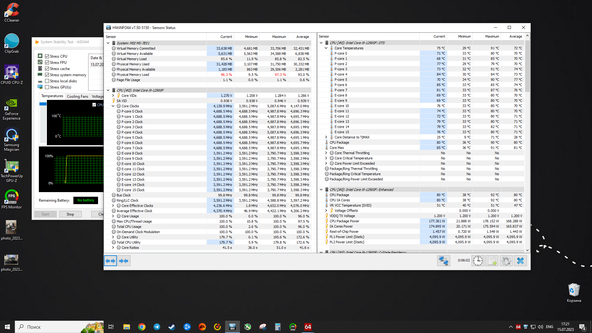 Господа, может кто подскажет, поставил новый блок, лимиты снял по PL1/2, 4096 ватт поставил. Проц максимум в стресс тесте потребляет 180 ватт, P-cores 4.7, e-cores 3.6 в полной нагрузке. В другой теме мне сказали: