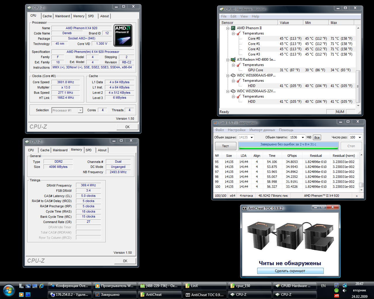 Счастливые обладатели феномов (вторых), подскажите какая у вас температура в номинале и при разгоне, вольтаж; в простое и под максимльной нагрузкой (linx)?
