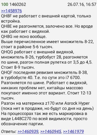 В последнее время в китайских интернет-магазинах aliexpress и taobao появились инженерные версии процессоров Intel Skylake. Оптимальны по соотношению цены и производительности предсерийные версии Core i7, которые обобщённо называют Core i7-6400T.