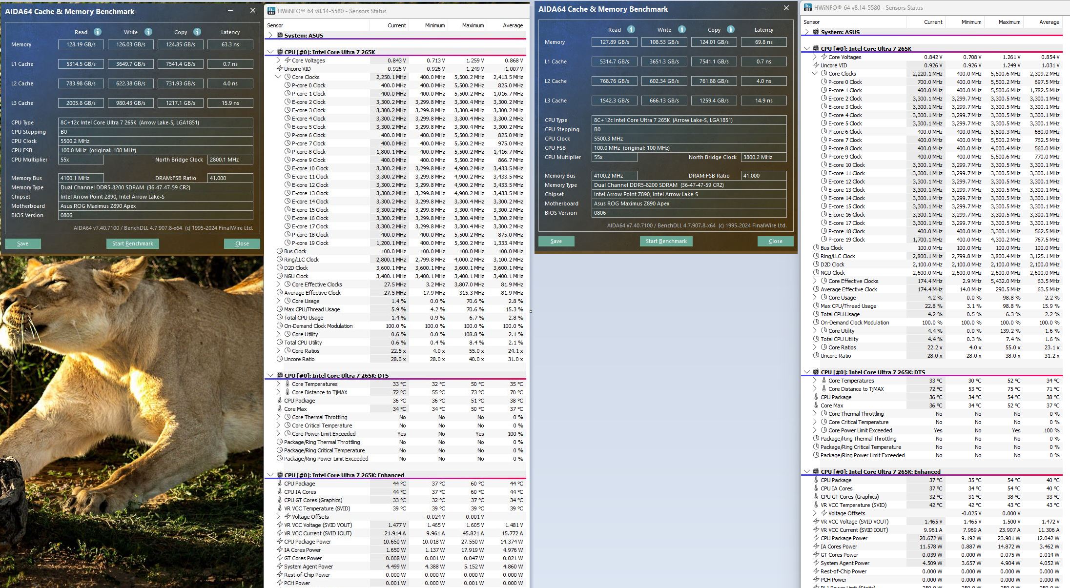 в моем случае тестировал на частотах P5500/E4900 Ring 4GHz/ NGU 3400Mhz / D2D 3800Mhz / DDR5 8200CL36 - это все на столе с чахлым кулером от Thermalright