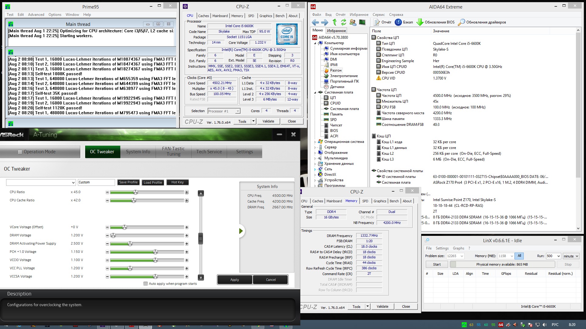 KT и остальные дорогие люди! Сколько ещё гонять Прайм - уже почти 10 часов, даже по конфигу 4500\4200(добавил на кэш - вместо 4100), 2667 - тайминги как мамука поставила и прочие параметры в Voltage - ничего не менял. Прайм 95: настройки Сustom со всей памятью, т.е. поставил 16000...может она уже и так работает нормально.