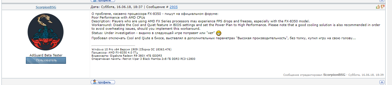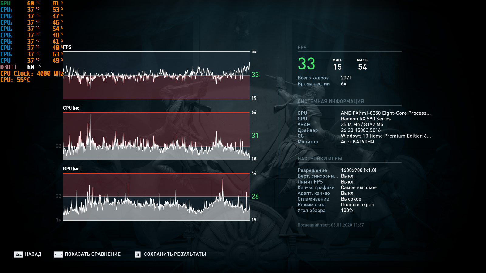 ну как то вот так для 1060 2088/9315 .Проц 4550/2680 Память 16гиг 2144 10-11-10-30.Пресет Самое высокое.Вертикалка вырублена Полный провал 590 -жесть просто Уровень 1050 карты демонстрирует,а точнее уровень gtx 960 4гига(ровно такие были у меня с ней результаты,а потом такие же при смене 960 на 580,что и доставило драйв и сразу поменял на 1060 ее Сравнил с выше выложенным видео.Наглядный пример НЕНУЖНОСТИ серии rx для FX.Даже разгон nb и проца до моих значений думаю не дал бы прирост до уровня 1060 #77