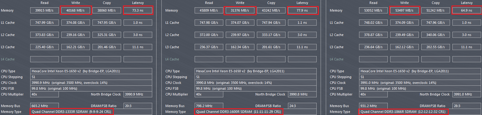 ipoh3g Это проблема у v2 камней. Я с этим встретился когда 1650 поменял на 1650v2. Тут подробности. Причем аналогичное отставание на 1333, 1600, 1866Мгц.