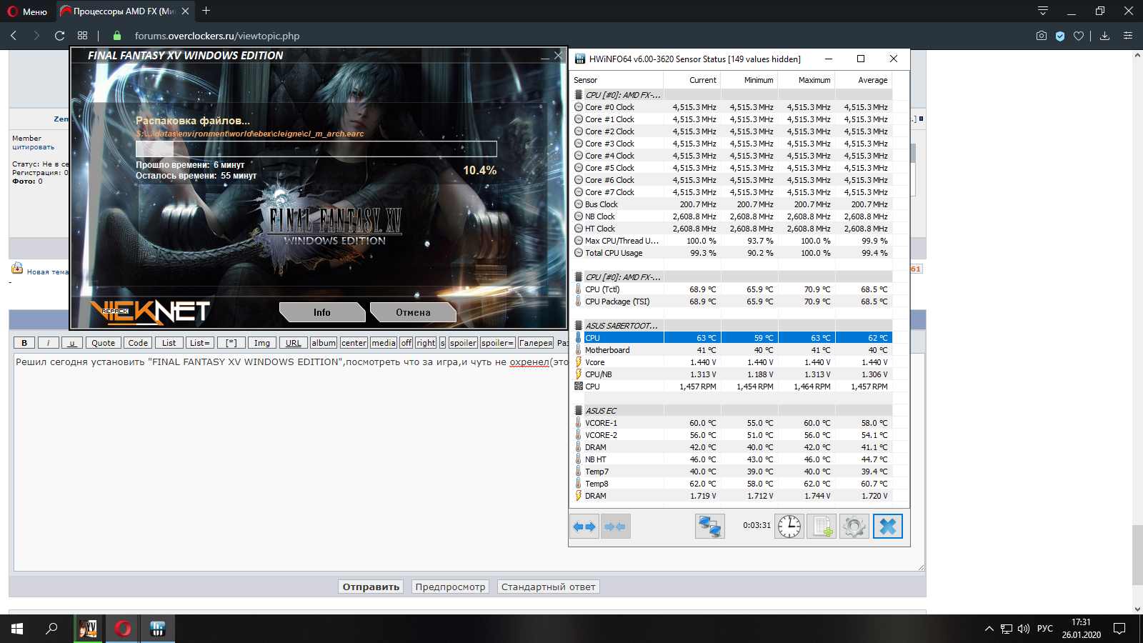 Решил сегодня установить "FINAL FANTASY XV WINDOWS EDITION",посмотреть что за игра,и чуть не охренел(это мягко говоря) от температуры во время установки