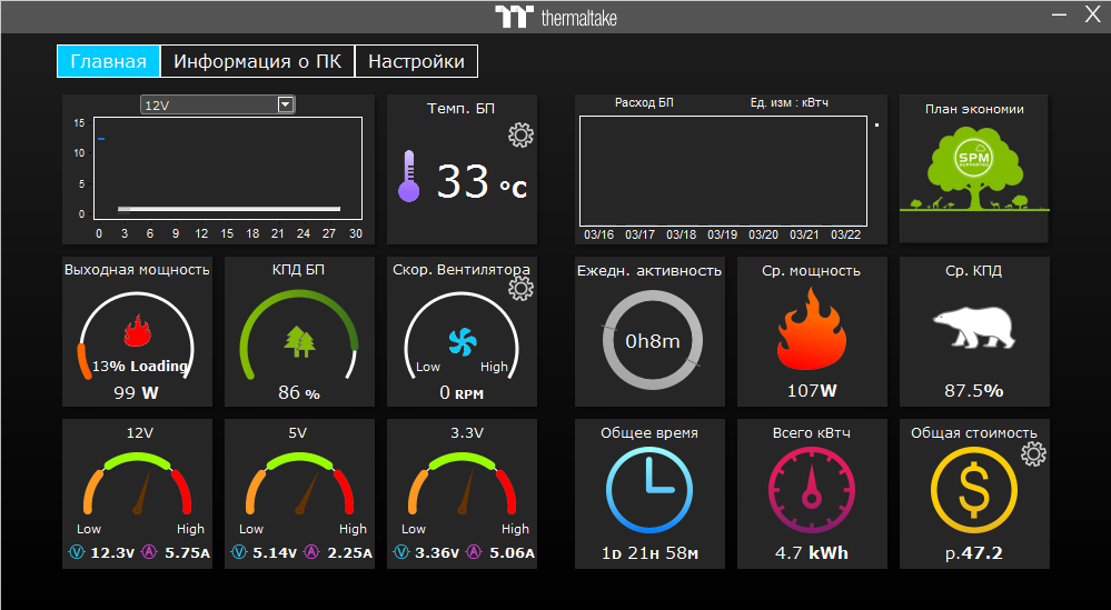 Спасибо за инфу. Есть разгон у процессора, памяти? Это оболочка от БП или какой то измеритель отдельный?