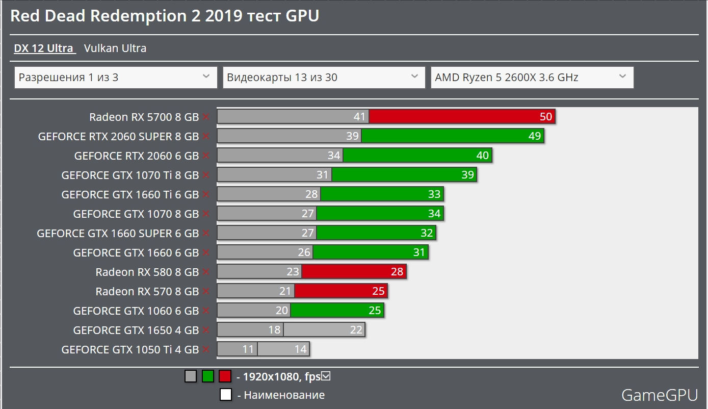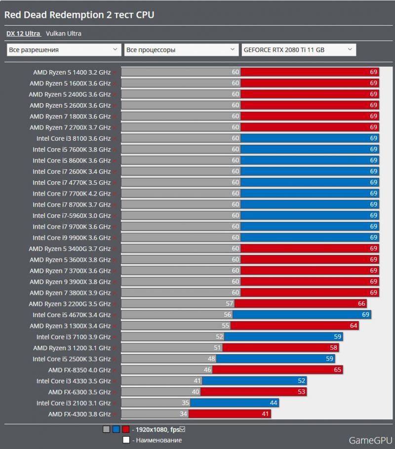всем привет! озадачился я актуальностью наших процев fx-83**, все критикуют их, но время для смены платформы не самое лучшее сейчас. решил выяснить как он справится с современными играми, выбрал интересные для себя. все данные с одного сайта, тк там удобная настройка графиков, да и сайт считается вполне надежным. ориентировался на видики 1660-1660ti, при их отсутствии на 1070-1070ti, в принципе 1070 между 1660 и 1660s, 1070ti где-то между 1660ti и 2060. имхо 1660-1660ti самый оптимальный вариант под fx-83**, по соотношению цен и возможностей. и навряд ли кто-то под fx-83** станет брать видик круче 2060. на графиках сравниваю fx-8350 с ryzen 5 2600x, как с тоже вполне бюджетным, но производительным процем. 1. Red dead redemption2. даже в стоке fx-8350 раскроет 2060. графики разнообразные, с сайта почему-то недавно убрали часть процев. но помню, что даже с 2060s у fx-8350 не было просадок в фпс по сравнению с райзен 5 2600.