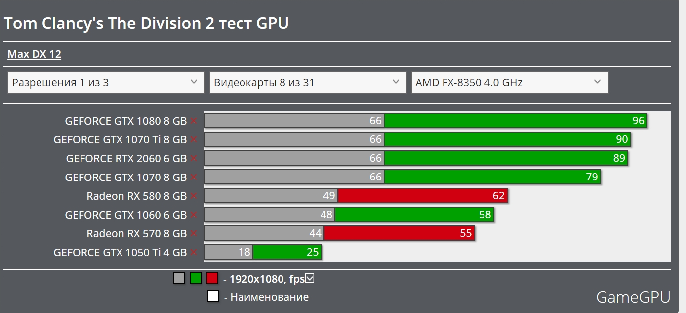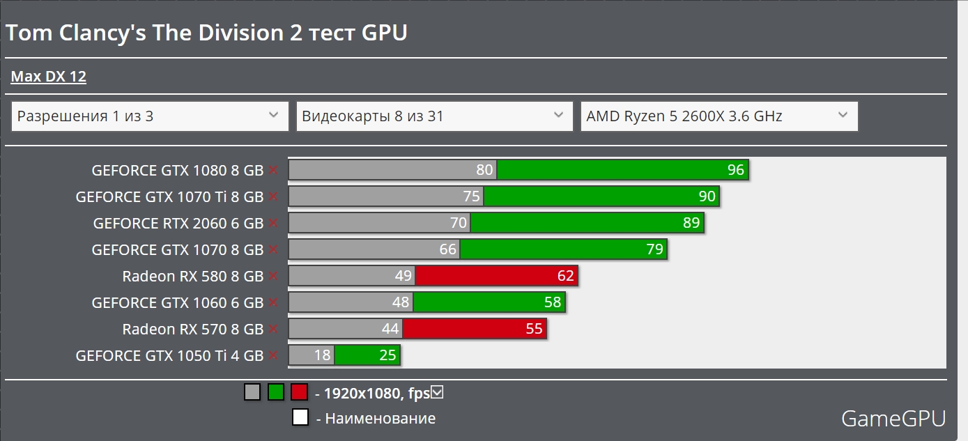 Добавлено спустя 3 минуты 27 секунд: 5. Division 2. разницы нет у 1070 / 1660