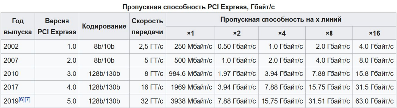 Че то никак 20,8 не вычисляется... И, судя по формуле, это биты, а не байты. 166400 Мбит/с выходит, это 20,8 Гбайт/с. Да... но только еще минус 20% = 16,6 Гбайт/с. Ибо каждые 8 бит данных стоят 10 бит для передачи. Я значит забыл умножить на 2, и еще на 2. Две линии и каждая в обе стороны. Все верно?