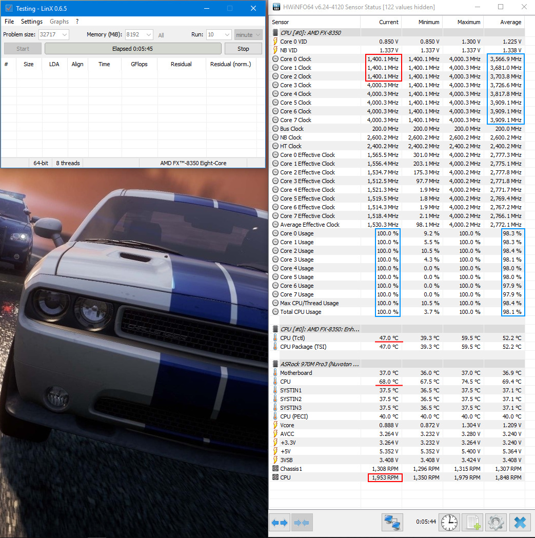 Какую температуру процессора FX и подсокетного датчика можно считать нормальной? Чтобы прекратить улучшать охлаждение, радиатор, вентиляторы, термопасту и т.п.? Без загонов, но чтобы процессор гарантированно находился в комфортной для себя температурной зоне? Как я понимаю, мерить нужно при полной загрузке процессота в LinX, погоняв систему хотя бы полчаса.