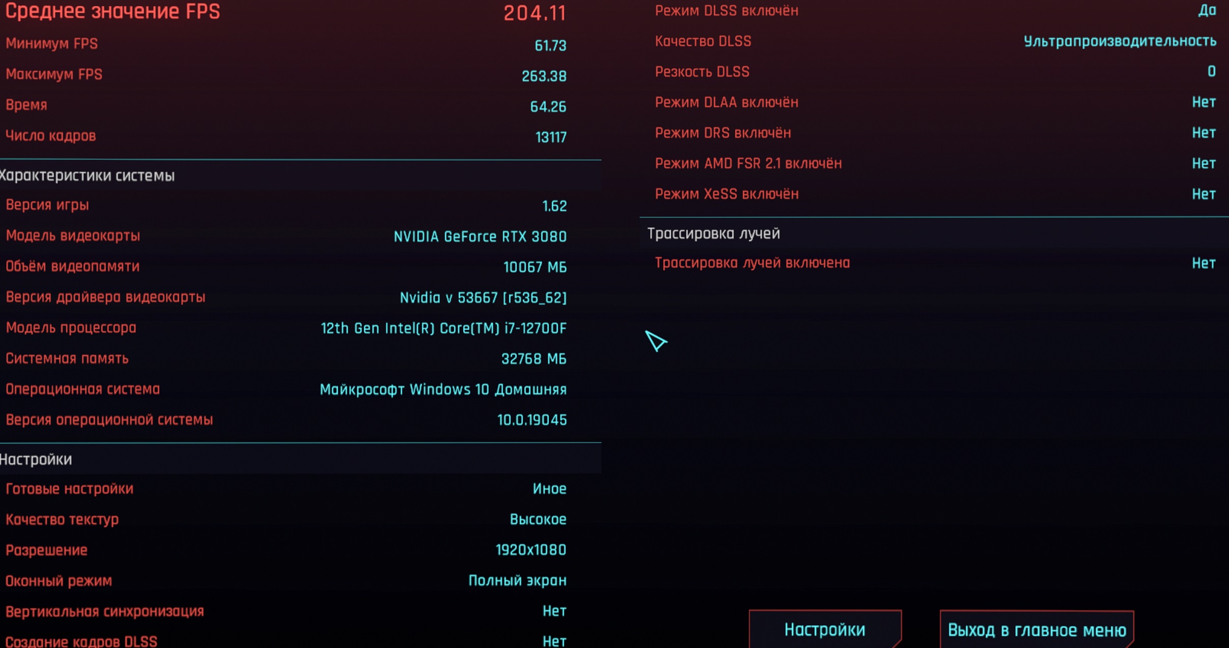 привет протестил все варианты сделал тесты в 1080 + пресет впечетляюще + длсс ультрабыстро - так загрузка гп не добиралась до 90%... результаты не отражают все просадки - но их видел на счетчике в моменты подлета к площади - чем меньше ядер тем больше просадки... в идеале конечно без е ядер за счет повышенного ринга. а вот в реальной игре на кольце в дожде - все просаживаются одинаково - с 100+ до 80-85 периодически при быстрой езде по кругу - в 4к без лучей и не зависимо от длсс