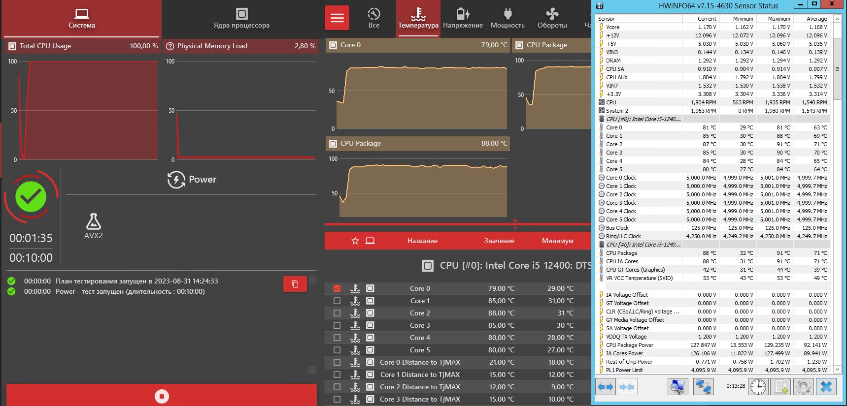 Да кстати как и говорил тест occt power сильнее грузит проц по сравнению с линкс, хотя может я как-то не так проверял, последняя же версия 0.9.7 для интел? в линксе удалось прогреть до 110вт, осст греет 127вт и изредка вылетает. Помню когда в осст на 12700 вылетало раньше, чего не было в fpu аиде, то потом иногда вылетало и в играх, так что линкса наверное маловато будет, он грузит как аида. Хотя не буду спорить, возможно линкс комплекснее тестит при взаимодействии с памятью.