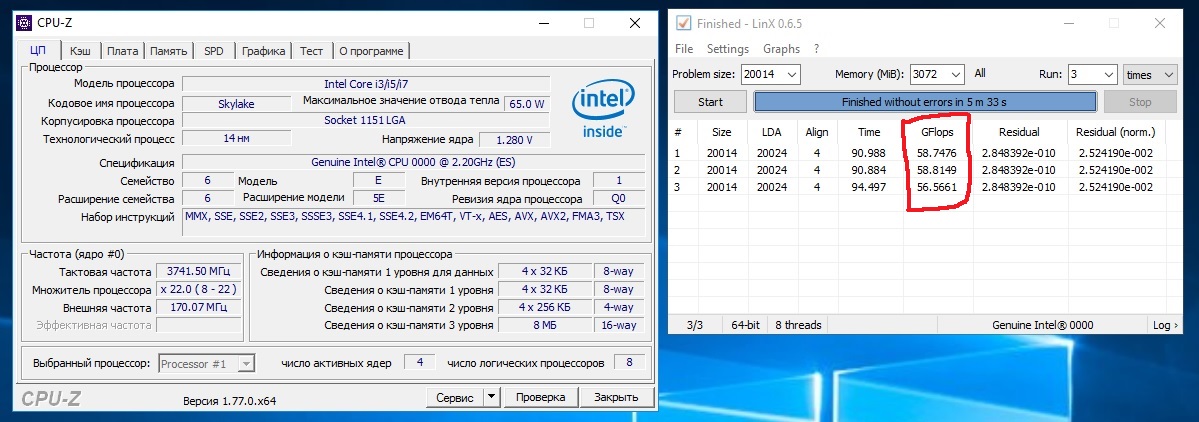 Спасибо, выставил настройки. Линкс проходит, но что то результаты непонятные, почему так мало gflops 58,7?