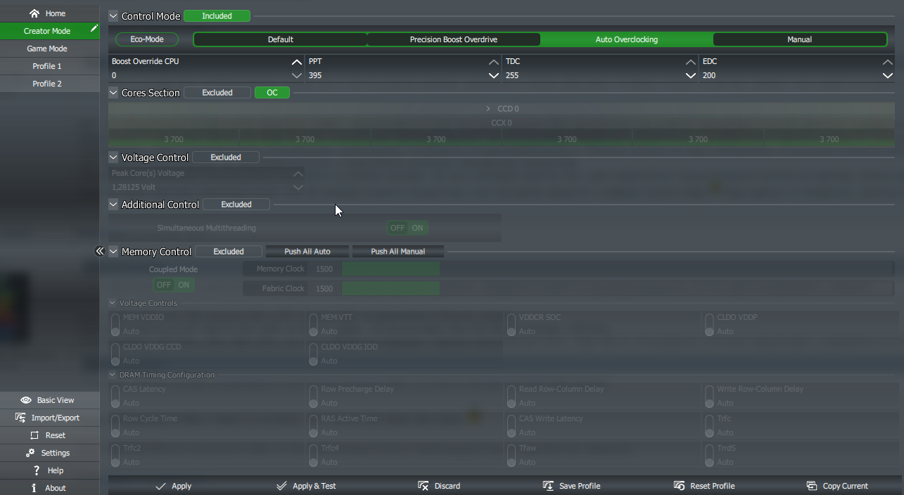 При этом методе игнорируется лимит EDC, лимит TDC настраивается исходя из возможностей VRM, какой ток в амперах материнская плата может максимально выдать не перегревая VRM, лимит PPT это максимальное потребление процессора, особенно актуально если система охлаждения очень инертная. 5900X/5950X упрутся в температурный лимит в 90°С на самом горячем CCD, 5600X/5800X в 95°С, эти значения можно уменьшить при помощи настройки Platform Thermal Throttle Limit. Последние 5°С до этого лимита дают приличные пенальти к бусту.