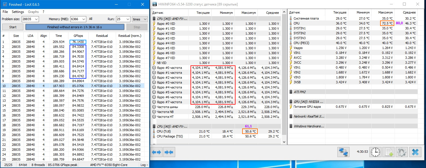 Причем тут Intel? Я все писал касательно именно AMD FX 8ххх. Linpack + GUI = LinX. LinPack не привязан к Intel. OpenBLAS быстрее даже чем Intel MKL на AMD. Я не зря указал аналог. Есть версия, конкретно для AMD. Linpack - программная библиотека, написанная на языке Фортран, которая содержит набор подпрограмм для решения систем линейных алгебраических уравнений. Разница с версией "для Intel" или "для AMD" только в наборе этих подпрограмм (Базовые - Lapack, BLAS, MKL и прочие, но могут быть и другие). Последним версиям LinX пофигу что тестировать - совместимы с обоими кланами цп.