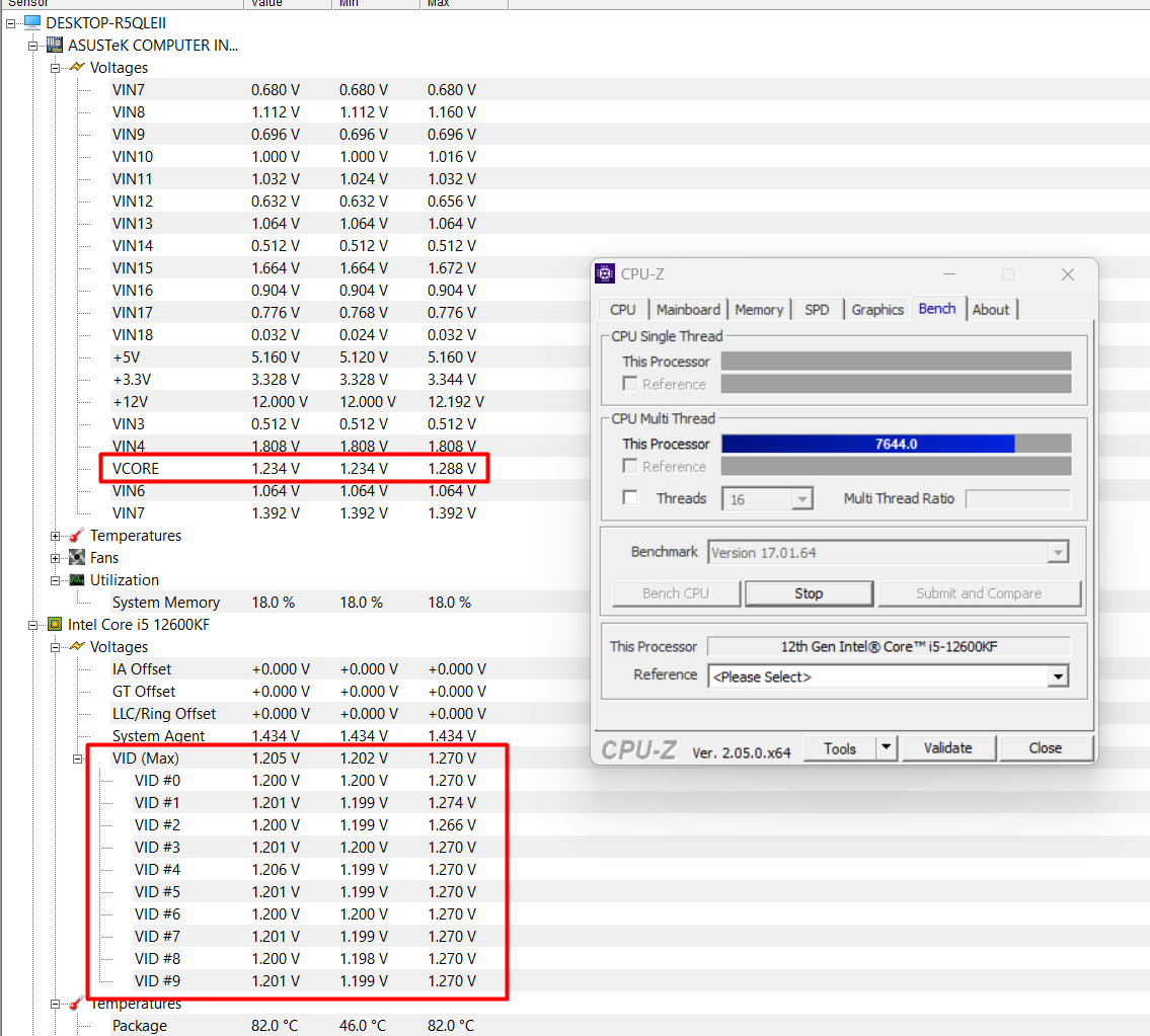 LLC стоит дефолтный 4, материнка TUF GAMING Z790-PLUS WIFI D4. Потребление во время стресс теста CPU-Z - 122Вт. Попробовал LLC7, с ним VID практически не меняется, а VCORE при нагрузке растет с 1.29 до 1.314. Потребление выросло до 142Вт.