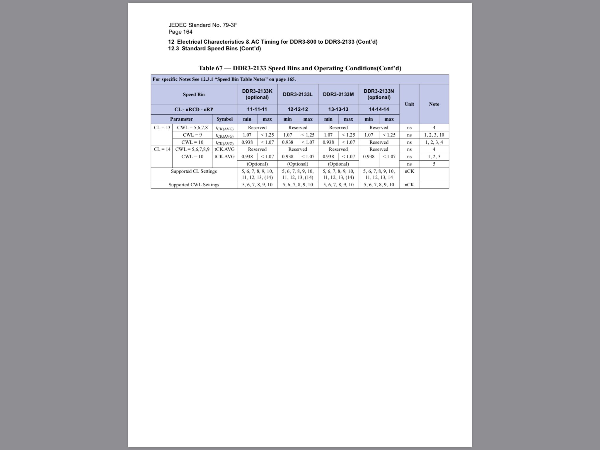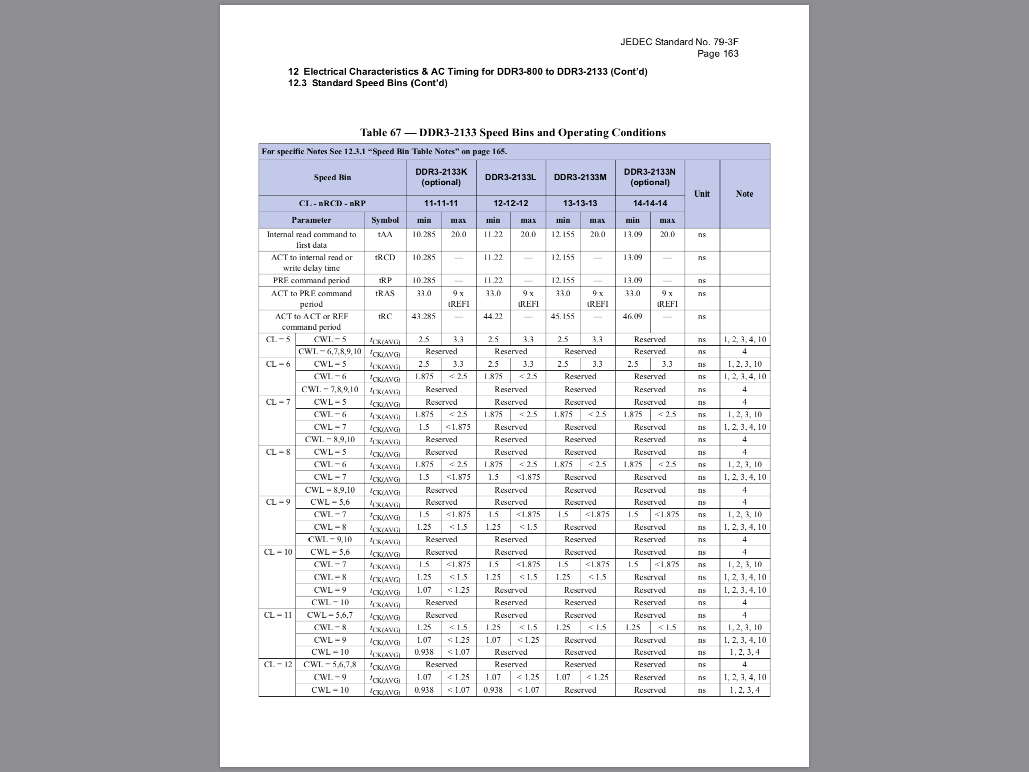 iskandar Для поиска максимальной рабочей частоты тайминги нужно брать из самого медленного варианта соответствующего спидбина (2133N) на этой частоте. Есть в Jedec.