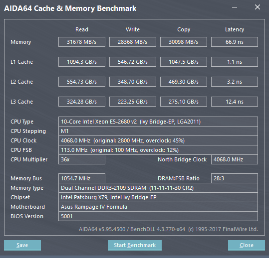 Приветствую форумчан, после разгона своего Xeon e5 2680 v2 решил так же разогнать оперативную память(HX318C9SRK2/16), но на частоте 2109 МГц с таймингами 11-11-11-30 1,6 В столкнулся с просадкой в бенче аиды по чтению, проблему решил изменением тайминга tWR с auto на 12. Чтение после этого восстановилось до нормального уровня.