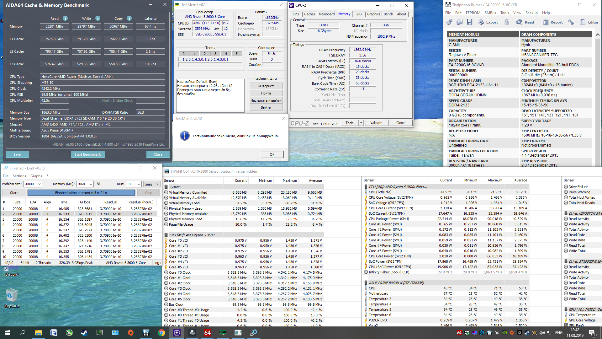 Без понятие что тут глючное сам райзен или биос. Этим линпаком я 1700 гонял там не было невязок. Когда стояла агеса 1.0.0.2 в аиде включаешь тест fpu комп вырубался, на 1.0.0.3ab уже нету такого. Так что можно списать на биос или особенность. В остальных тестах все стабильно.