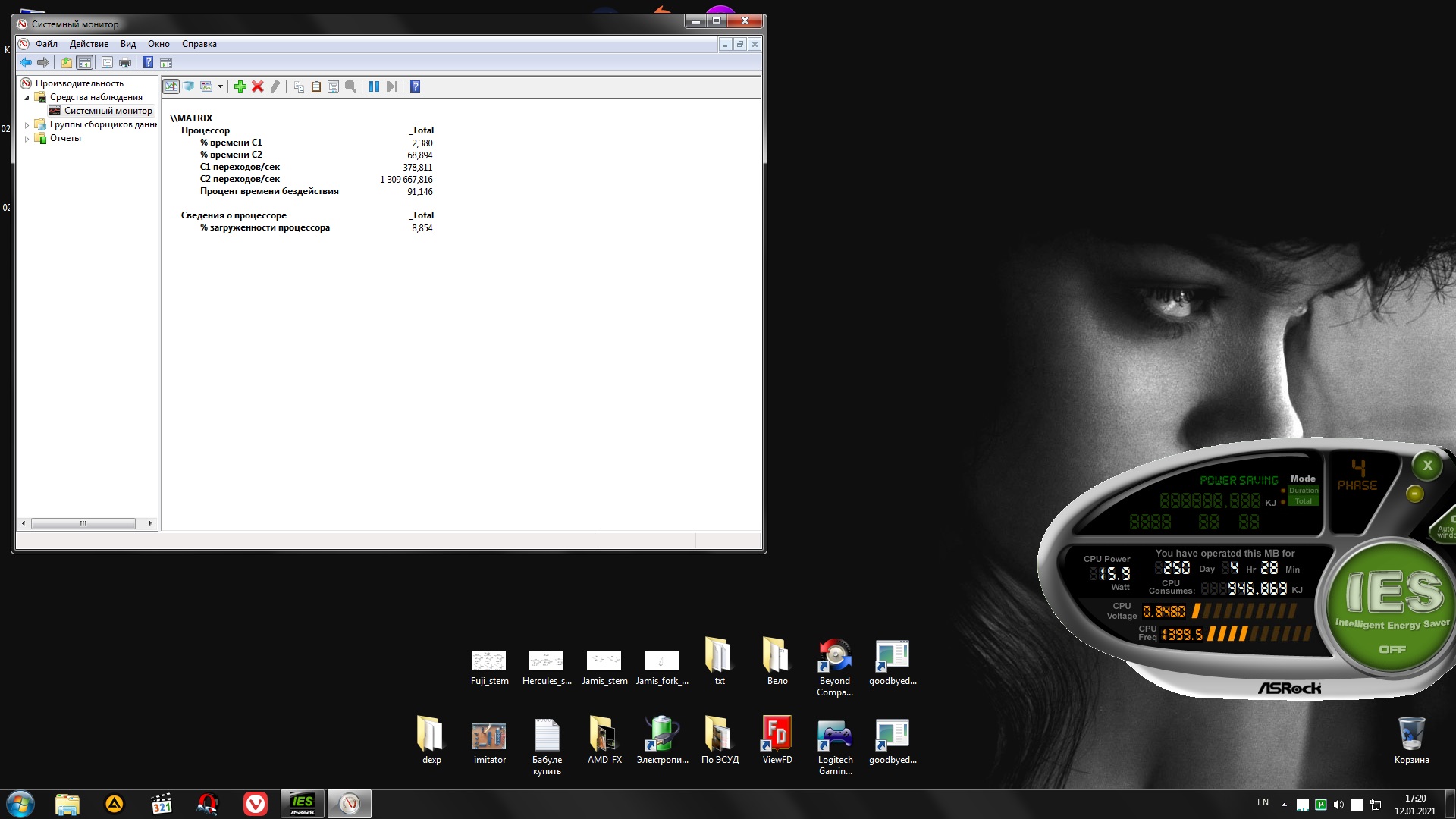 Вот для сравнения просмотр FullHD видео в браузере со включёнными C'n'C и C-state: