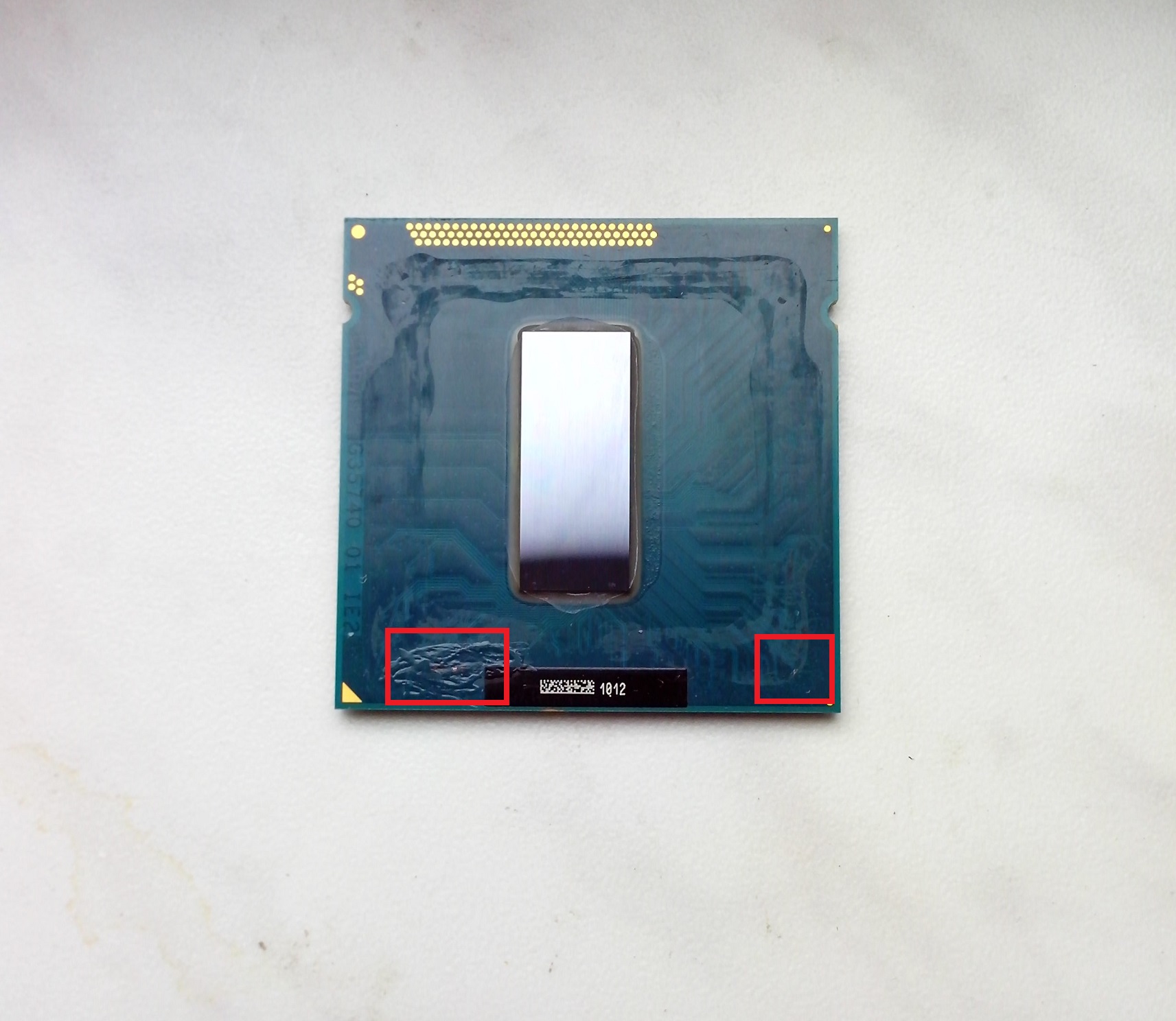 Вчера скальпировал i7 3770k лезвием по периметру и после снятия крышки, очистки текстолита от герметика, обнаружил открытые медные участки. Подумал, что всё - пипец моему камню. На всякий случай мазнул суперклея на открытые участки (возможно они и не открытые, но слоя тексты там почти нет). Сегодня собрал систему без нанесения ЖМ, а просто-напросто прижал в сокете крышку к кристаллу, поставил кулер и запустил систему. Система запустилась. Все 4 слота работают, правда не посмотрел в каком режиме "экспресс пися" работает. ЗЫ: Когда одевал крышку, то было заметно, что она чуть-чуть не достает до текстолита и висит на кристалле. Это большой плюс к тому, что не нужно будет мазать ЖМ крышку с внутренней стороны. Ззы: планирую сажать крышку на герметик только в области "ушей". Правильно ли это или всё-таки нужно наносить его по всему периметру, кроме низа?