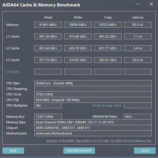 Завел память на 2666 МГц, пришлось поднять тайминги и напряжение, результат заметный, в winrare прирост с 11100 попугаев до 11800, но что удивило, латентность кэша L3 упала в 2 раза! А памяти почти на 15 ns! Что странно, при небольшом увеличении частоты на фоне выросших таймингов...