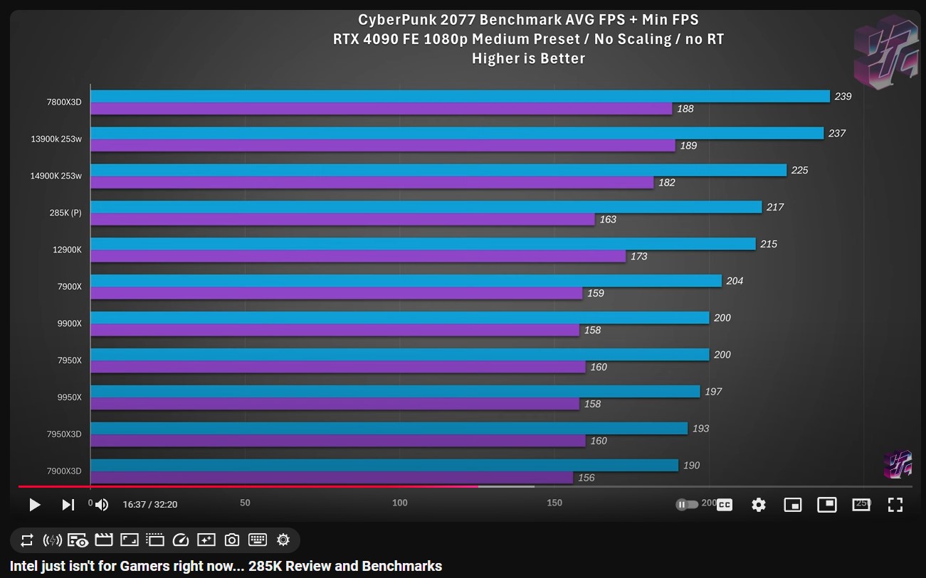 Я говорил что будет плохо, говорил что фуфло мелкие ядра, говорил что Интел пора уволилить весь отдел маркетинга. Говорил что 12900HX - лучший проц на 1700, ну теперь и в сравнении с 1851, единственое не бракованное поколение Теперь смотрим как 285k в разгоне ядер и памяти сливает 14900k по 1% в КС2