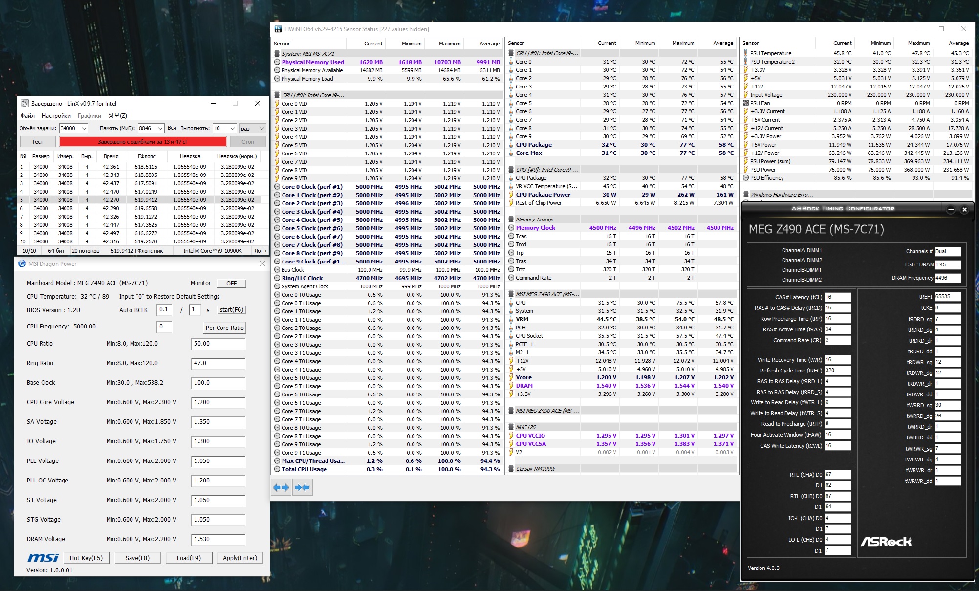 Не могу на 10900к пофиксить проблему с линкс. Пишет про ошибку всегда, хотя невязок нет. В стоке, разгоне-не важно. MSI, ASUS - один результат. Та же сборка на 9900к работает отлично. Без НТ на 10900к тоже всё ок. Память стабильна. Куда копать?