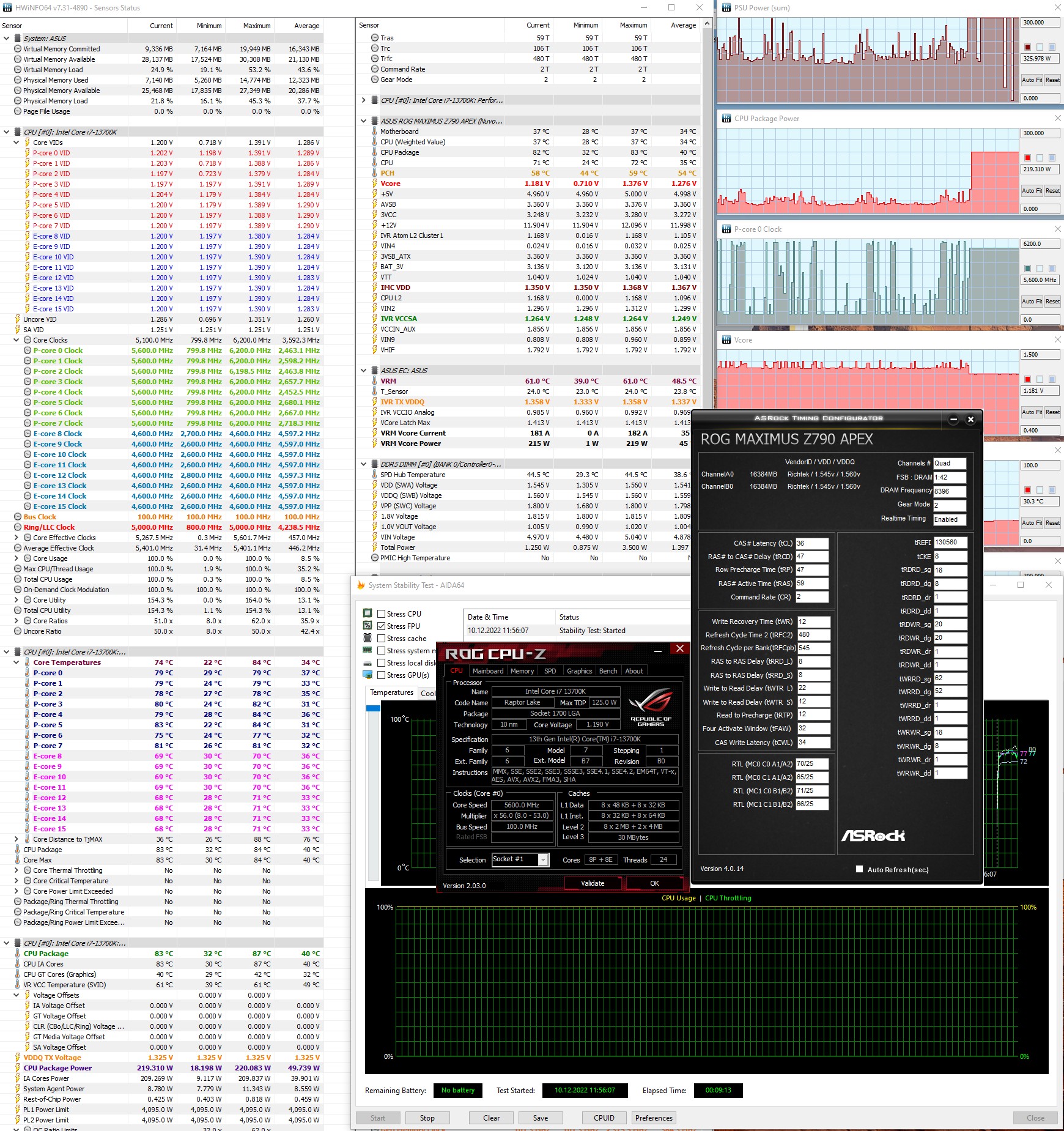401.649ватт 5800 П ядра 4600 Е кеш 5000, ЛИНКС жесткая нагрузка. 86 градусов.