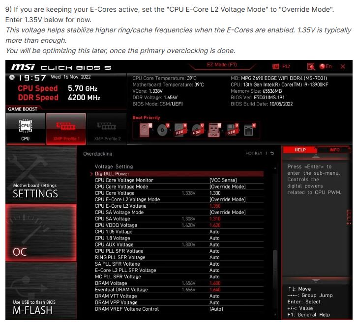 Подскажите когда накидывать и сколько на "e-core l2 voltage" на msi ?? В прайме95 часто рандомные Е ядра отлетают, причём P ядра крутят нормально... Этот вольтаж крутить ? и как узнать сколько ставить, то датчика нет..
