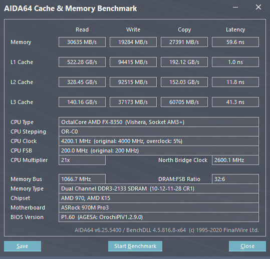 Берет 4400 без проблем. Но если на 4200 у меня 1,2875 В - стабильные даже под линпаком (и нагрев сразу падает) то при 4400 хочет 1,35 В, а это для VRM этой МП, уже нагрев. Поэтому, так... Цель была - открыть узкие места, не более того. Остальное - уж как получится. Знал бы ранее про VRM - взял бы топ МП AM3+, но и знаний не было, и в наличии топа не было. В 2019 году мне просто был нужен ПК на замену старому Athlon X3.... что-то "по быстрее и за недорого и новым". Вот выбор и пал на FX. Это не была осознанная покупка. Так что не надо кидаться помидорами. Я сделал большой шаг вперед в знаниях за 4 года.