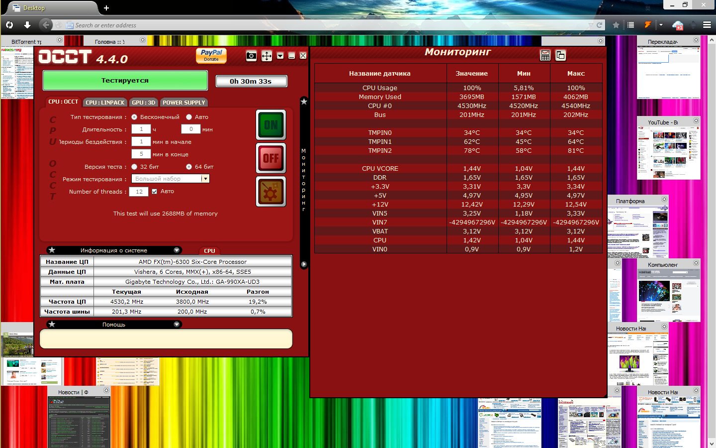 Приятно удивился что не только 4,5 ГГц на 1,44 В стабильно заработало, но и охлаждение справилось при закрытом корпусе, хотя раньше для прогона тестов приходилось открывать корпус (правда я продув улучшил на днях).