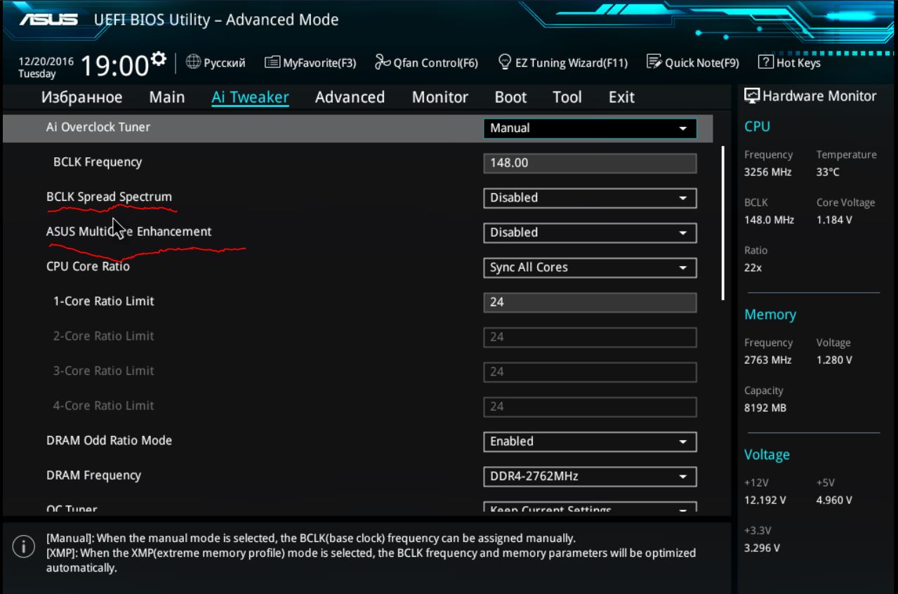 kisulja У меня при выборе частот, стабильно работало только на 2100, пытался ставить сток(2400)- не старт, ставил выше, тоже не стартует, а вот при выставлении auto было около 2560, работала. Почему так- не знаю. Еще заметил, что есть порог частот памяти в зависимости от значения шины. то есть если раньше был выбран 2100 допустим, то при превышение шины, допустим выше 160, этот параметр частоты памяти, становился уже не 2100, 2000. Как-то так