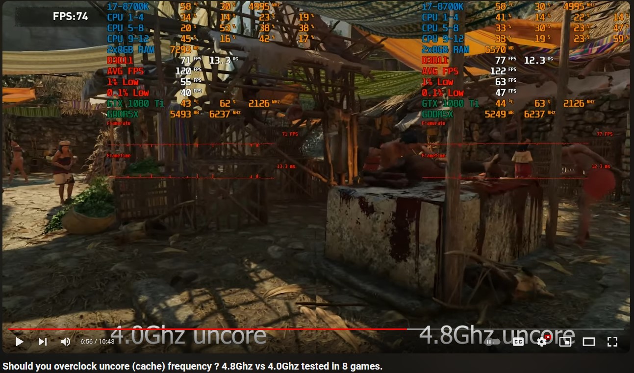 Как мы видим разгон шины с 3500 до 5000, а это + 42% дал всего несколько кадров, то есть упора в шину вообще нет. А теперь сравним с твоей хвалёной infinity fabric