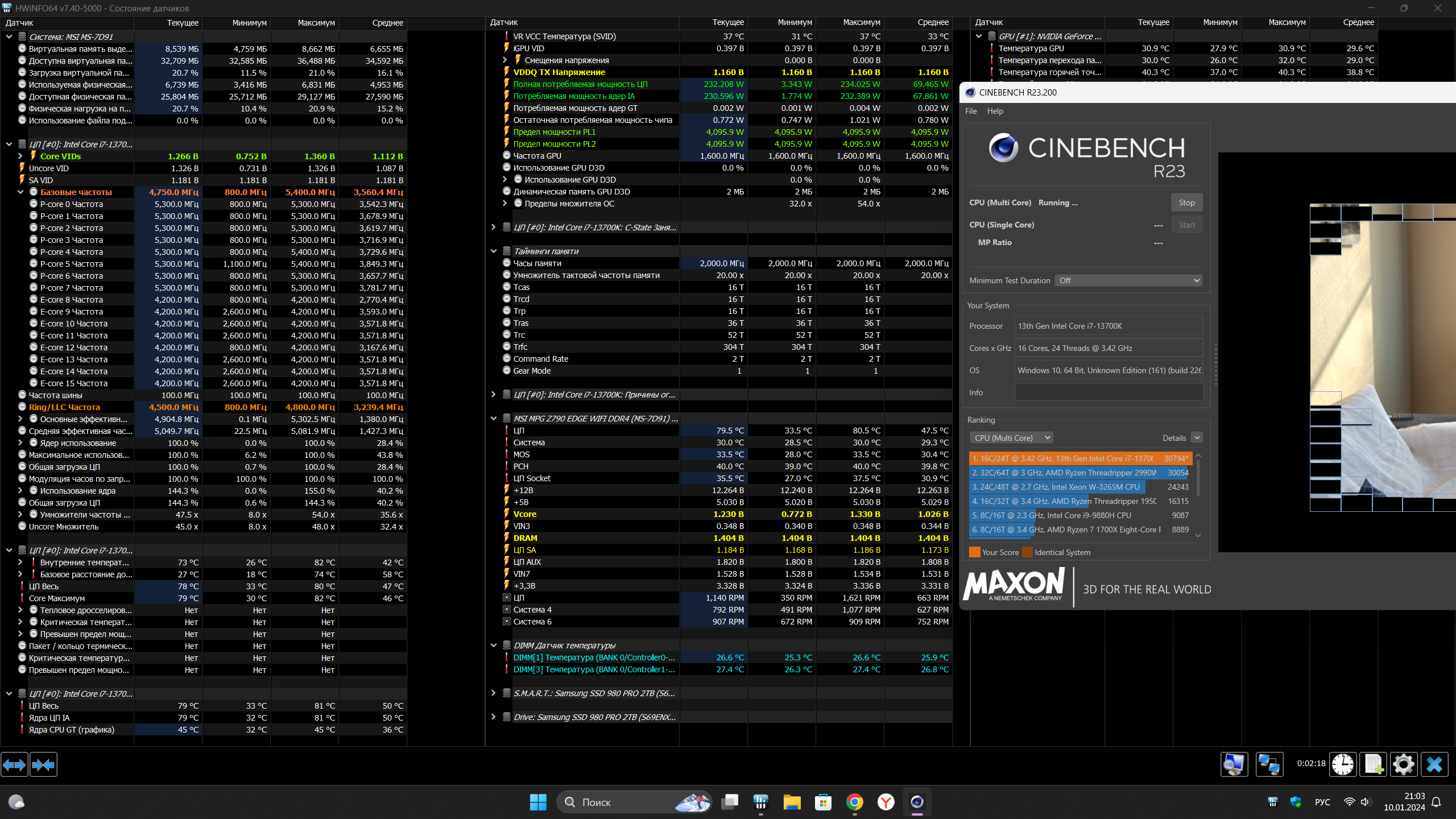 Cinebench 200 Вт при 1.17 В. T = 90C CPU-Z тоже 1.17 показывает. OCCT показывает P-Core и E-Core 1.21 SA VID 1.201 Uncore VID 1.171