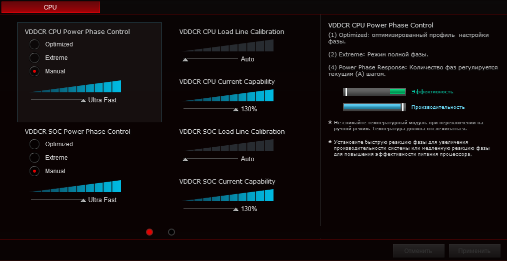 Проблема слишком высокого ллц - в овершутах после сброса нагрузки. Я на предыдущем камне после всех кручений остановился на LLC8, минимальном значении с максимальной просадкой. Но там ситуация была попроще, оффсет и автобуст. Тут не стал искушать судьбу и оставил ллц в авто (по ощущениям, оно ранее соответствовало LLC3-4 при шкале 1-8). В общем, его скорее имеет смысл крутить в минус, чем постоянно держать на максимуме. Это неправильно, когда ллц понизил, и все посыпалось.