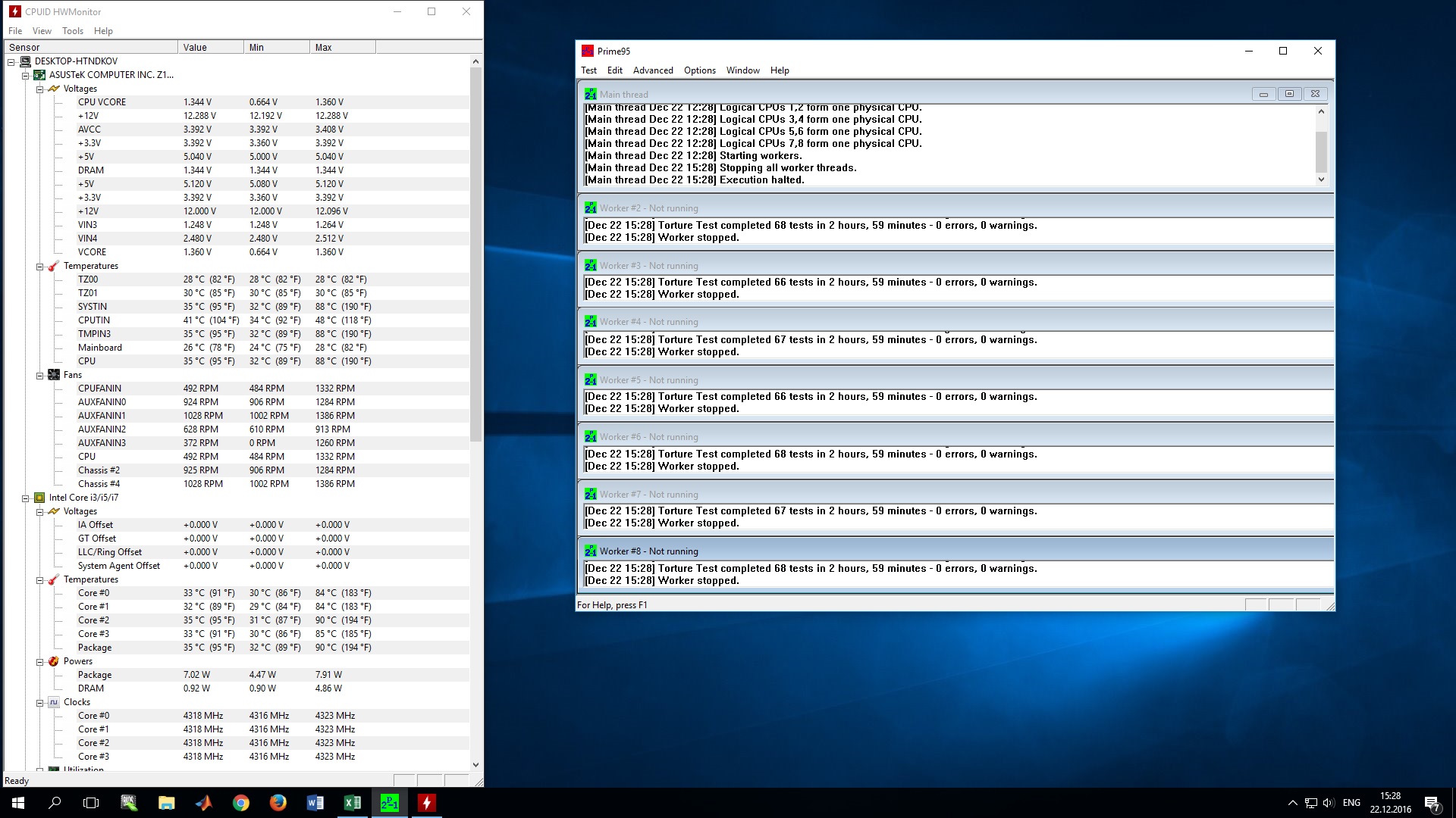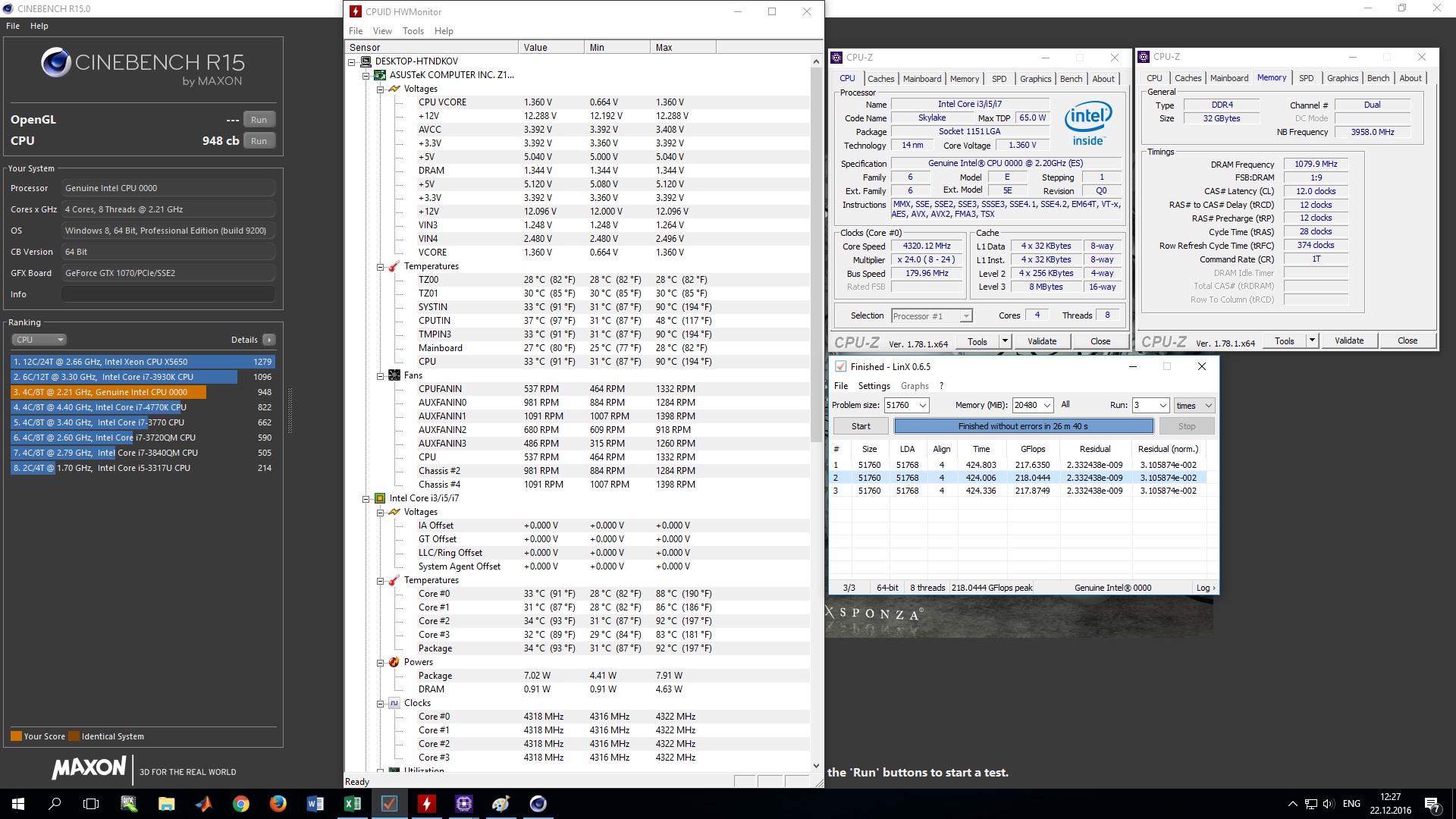 Я уже недельку экспериментирую. Сегодня проверил стабильность при частоте 180*24=4320 МГц (1,36 В), память 2*2160 МГц 12-12-28-1. Результаты в Cinebench 948-962 балла, в LinX - 218 Гфл, в Blender: 35,12 сек (100 samples) и 70,2 сек (200 samples). 26 минут LinX и 179 минут Prime95 проработали без ошибок. Мой предыдущий более слабый профиль (180*24=4320 МГц (1,376 В), память 2*2160 МГц 14-14-34-1), coхраненный в биосе, тоже проверенный на стабильность, почему-то ни в какую не хочет применяться. Когда пытаюсь применить настройки из сохраненного профиля, биос намертво зависает. Надеюсь, что текущий профиль не перестанет работать ни с того ни с сего. Теперь хочу подобрать еще один профиль при вольтаже 1,344 В, чтобы немножко снизить температуру.