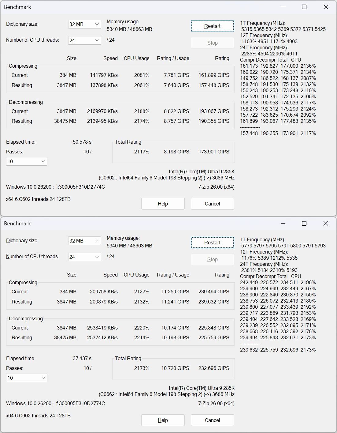 ну и в том же архиваторе быстрая память и шины нехило накидывают попугаев