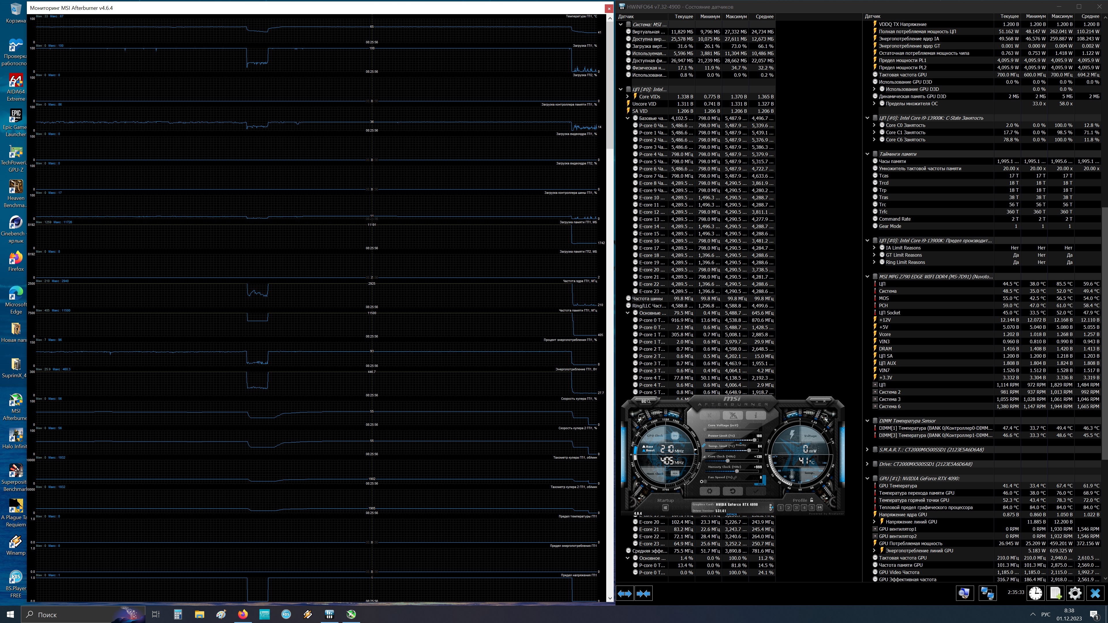 Ещё из негативных нюансов платы MSI Z790 -это то, что на моём экземпляре, идёт завышение напряжения на память, с его сильным падением, в биосе выставлено 1.410, просадки, при этом, до 1.408, пик 1.420...