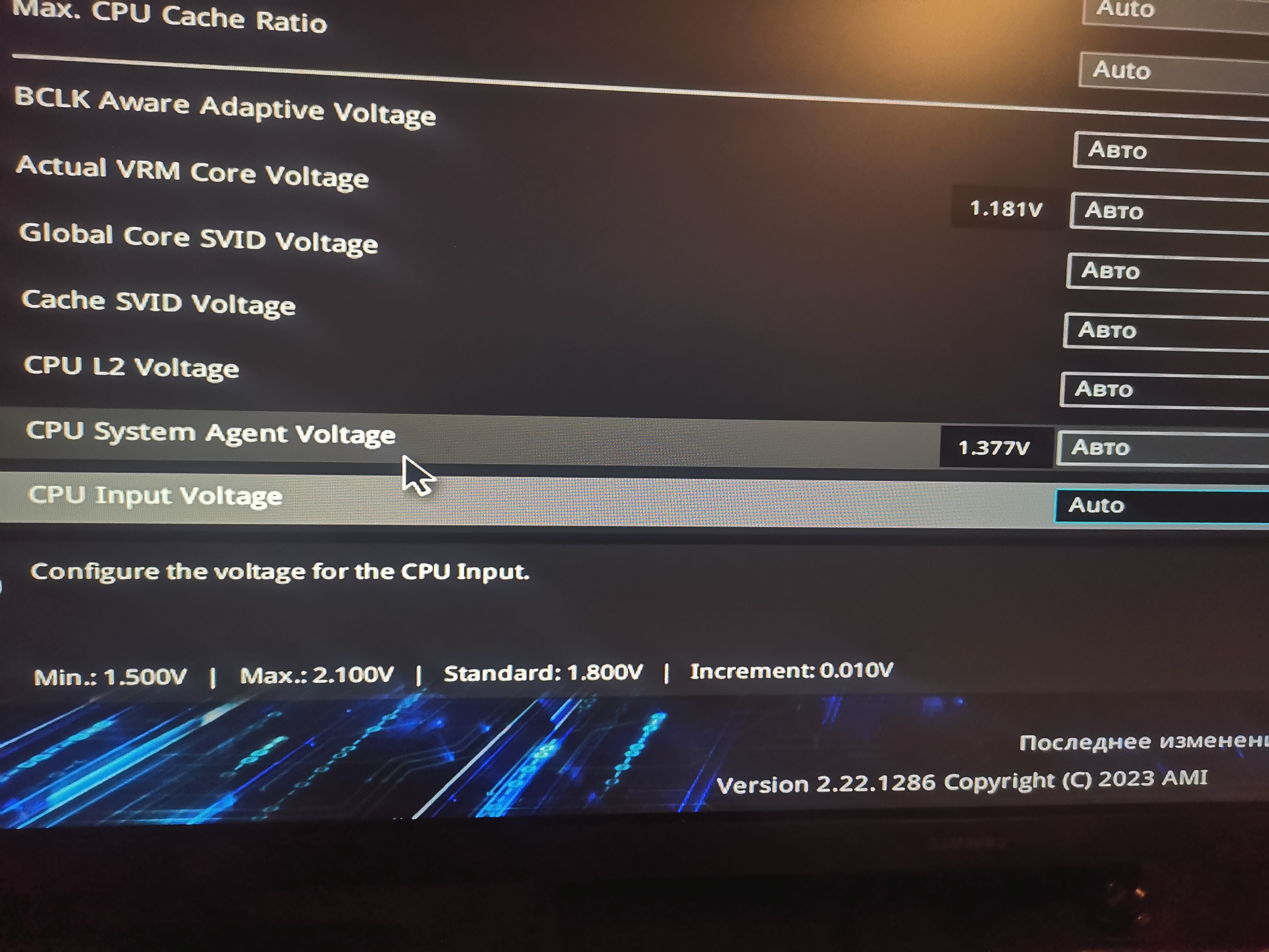 у меня на 1.1v работал при частотах до 3.7ггц ошибок не было, биосы многие в авто завышают напругу, я руками только vcore, dram и sa всегда правлю, рекомендуемые напряжения(от и до) можно найти на форуме или в интернете