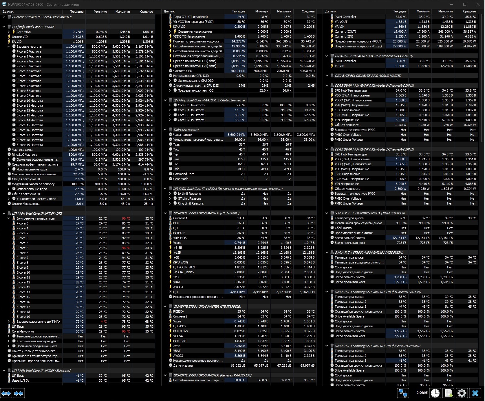 у гиги я думаю иначе все... в биосе заметил вольтаж мониторинг на первой странице как стоит макс.1.32v. так и не меняеться.хотя в винде снижаеться до 0.750v(adaptiv) вона у пенсионера600 на мси....в биос кажет снижение 0.800v хз.почему так в плане железной составляющей гига z790 ax_w хороша.. ну а биоса допилят их на этой модели всего 6 штук