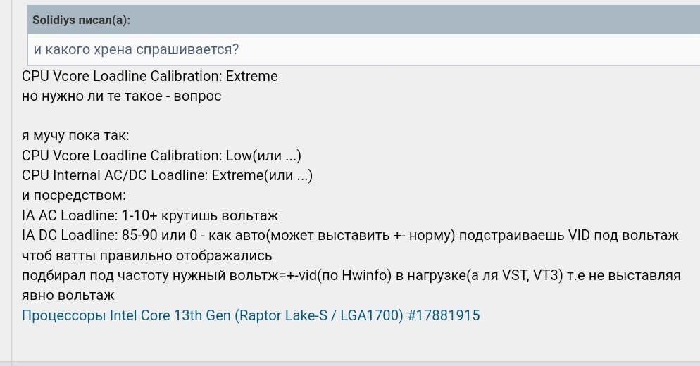 А Какой TVB в биос надо отключать? У меня их два один enhanced tvb и второй voltage reduction initiated tvb. Tak же вопрос по поводу vid в hw info, там есть core vid и uncore vid. К какому надо подгонять voltage cpu? И подгоняет ас или dc?