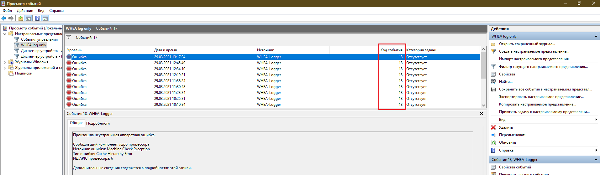 Поставил 5001330. Все то же самое - сразу после загрузки ровно 101 штука 19-ых в логе, вынь и положь, как и до этого. Вообщем бредятина все это. WHEA 19 это хардварная ошибка, максимум что винда может сделать - перестать логировать.