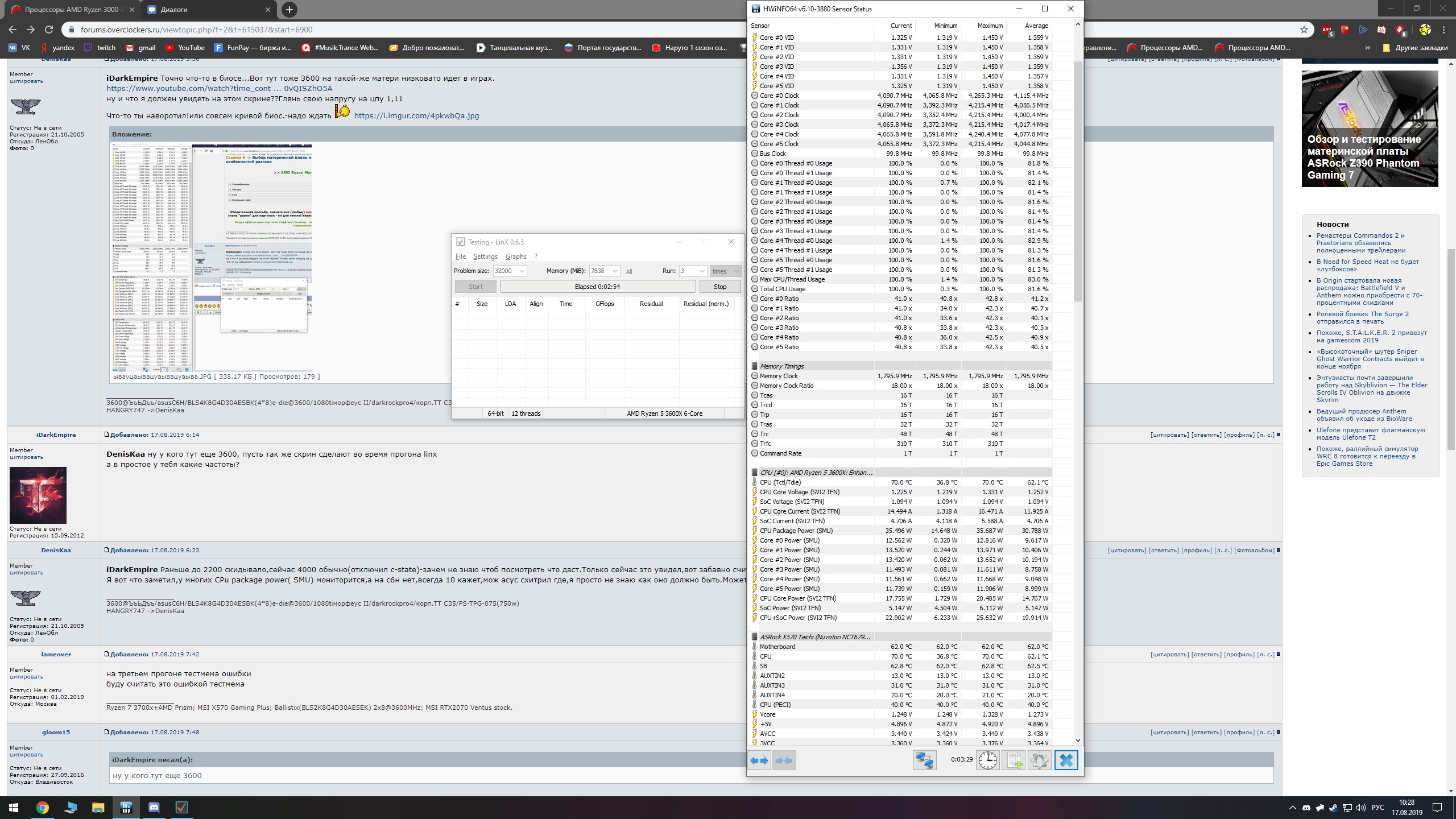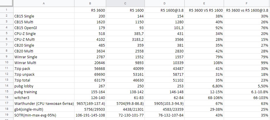 А еще получился у меня вот такой интересный тест... Материнская плата MSI B350M PRO-VDH c последним бета-биосом, память samsung oem 3200 16-17-17-17-34-60-1T и немного ужатыми вторичками, система одна и та же win10 1903 с последними обновами, дрова последние с сайта АМД, все тесты гонялись несколько раз, чтоб исключить какие-нибудь аномалии. Тесты в pubg и ведьмаке сделаны несколько не по канону, просто прибегал в определенные места и смотрел там фпс, но думаю для понимаю картины этого достаточно. Очень удивила разница фпс в ведьмаке, проверил несколько раз, даже назад 3600 поставил, разница в 2! раза... Warthunder друг попросил прогнать, full hd высокие настройки, на FX8350 вышло 4341 (76 - 66.6) Думаю мой тест пригодится кому-нибудь, кто хочет перейти с 1600 на 3600, у меня получились вот такие результаты, это если ничего не меняя, воткнуть в мою систему вместо 3600 1600