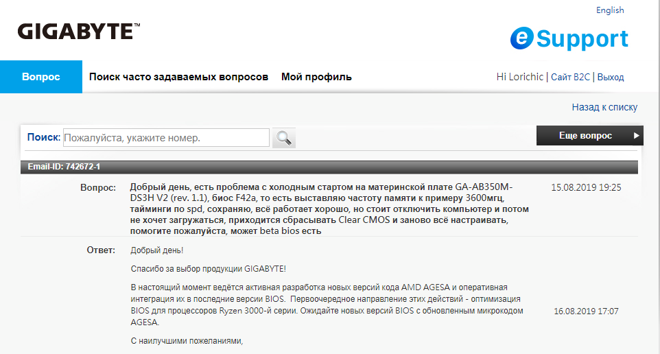 Я выключаю комп, но не обестачиваю, тогда настройки на GA-AB350M-DS3H V2 не слетают, задал в тех.поддержку вопрос, обещают новый биос
